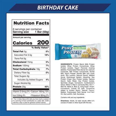 Which is great because ONE Birthday Cake protein bars are filled with 20 grams of protein giving you the energy you need to perform at your peak. One Birthday Cake Protein Bar Net Carbs. Find calories carbs and nutritional contents for Pure Protein Bars - Birthday Cake Net Carbs and over 2000000 other foods at MyFitnessPal.